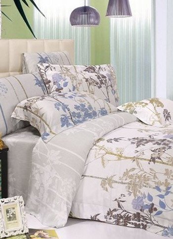 4-pc Gorgeous Light Gray Floral Tencle Bedroom Duvet Cover Bed Linen Set Full / Queen Size Feature